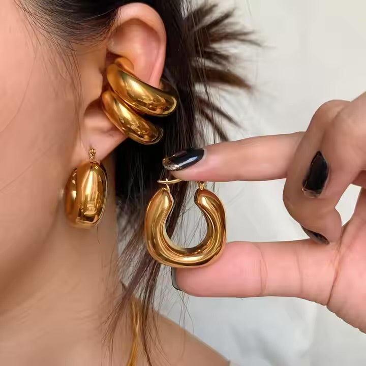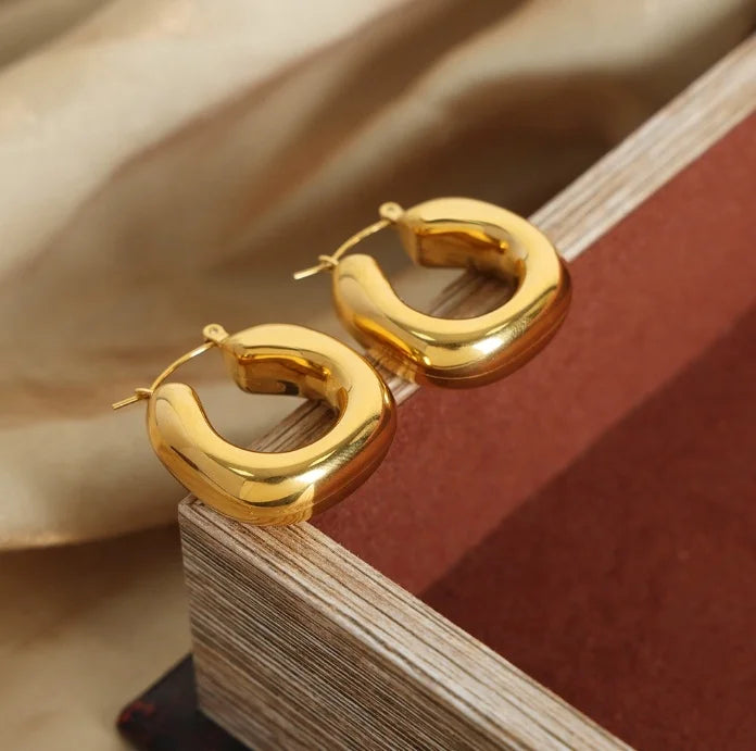 Elevate your style with our OTILLIA HOOPS. Crafted with confidence in mind, these stunning 18k gold plated hoops are the perfect accessory for any occasion. Show off your elegance and make a statement with these beautiful hoops. Elevate your look and elevate your confidence with the OTILLIA HOOPS.